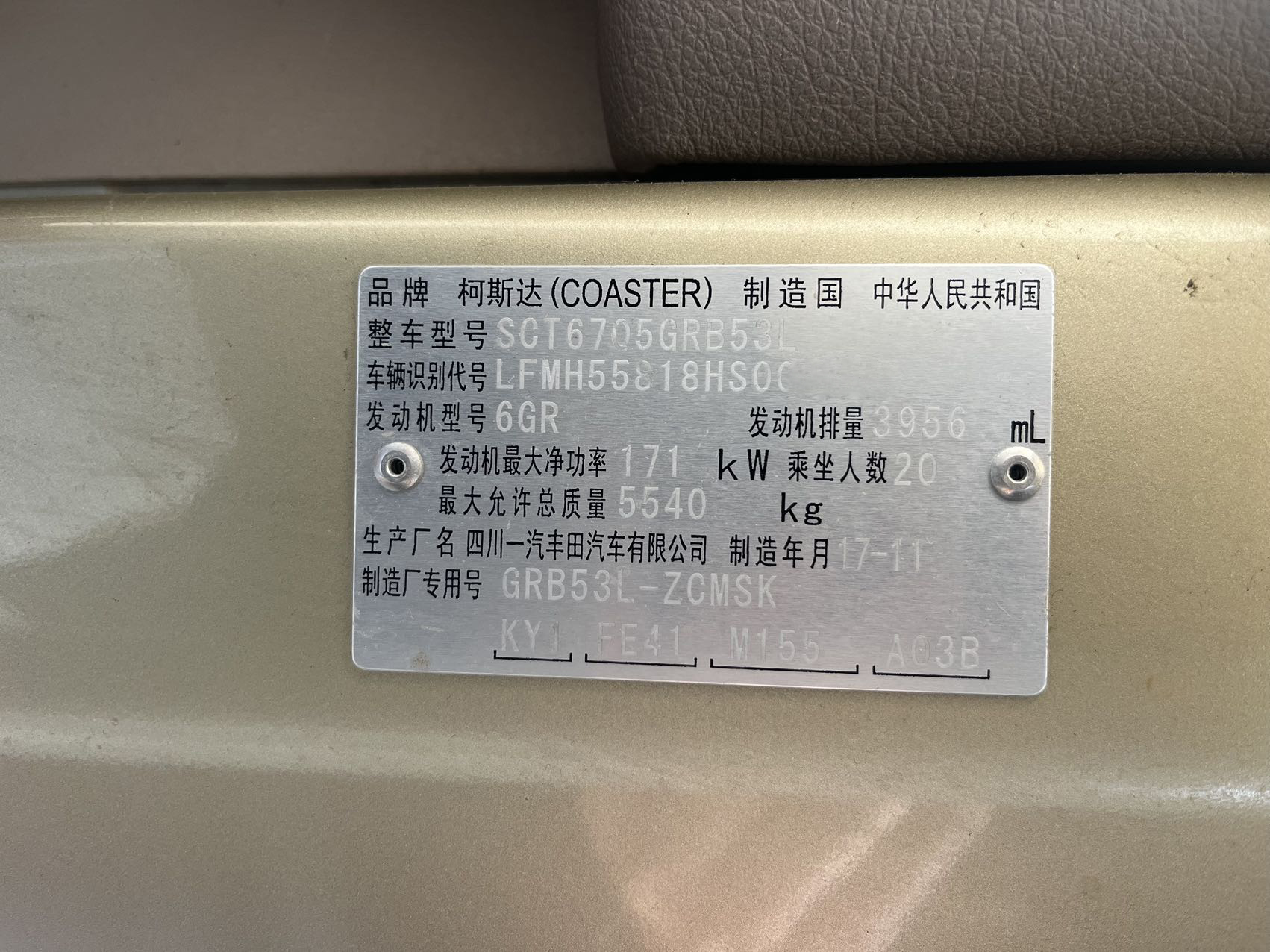 1.品牌型号:丰田柯斯达SCT6705GRB53L